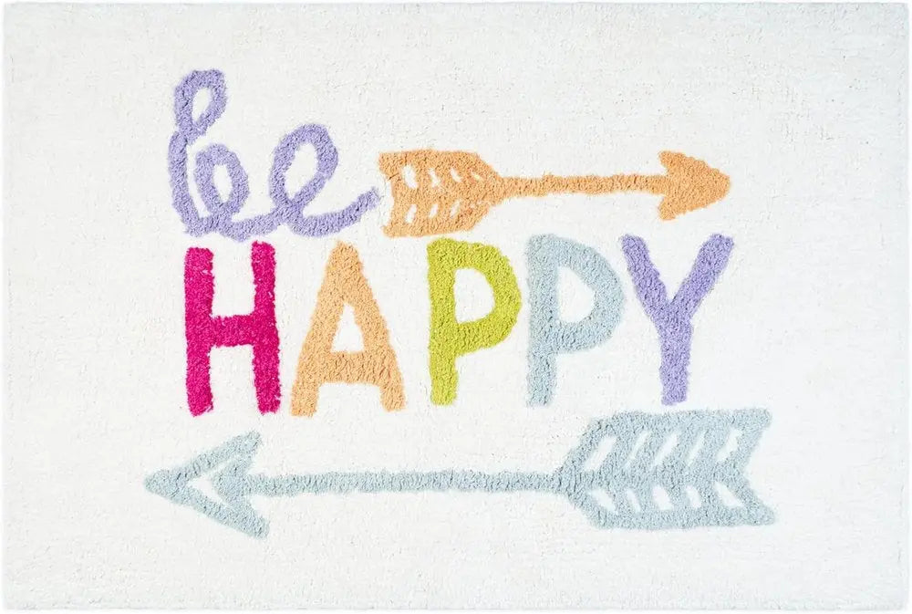 32" White Purple And Green Cotton Be Happy Youthful Bath Rug