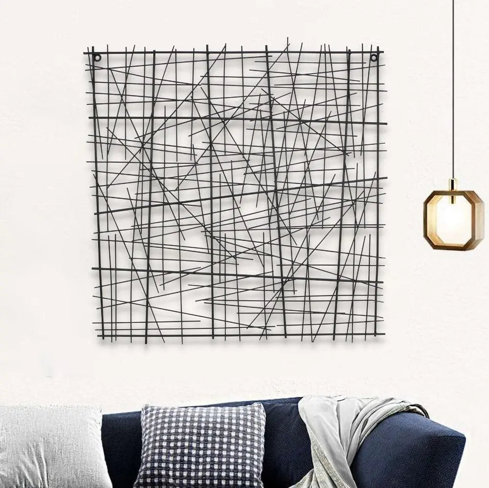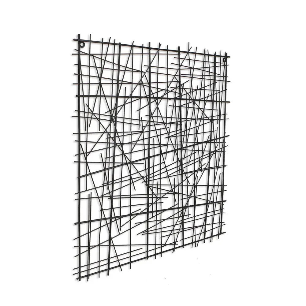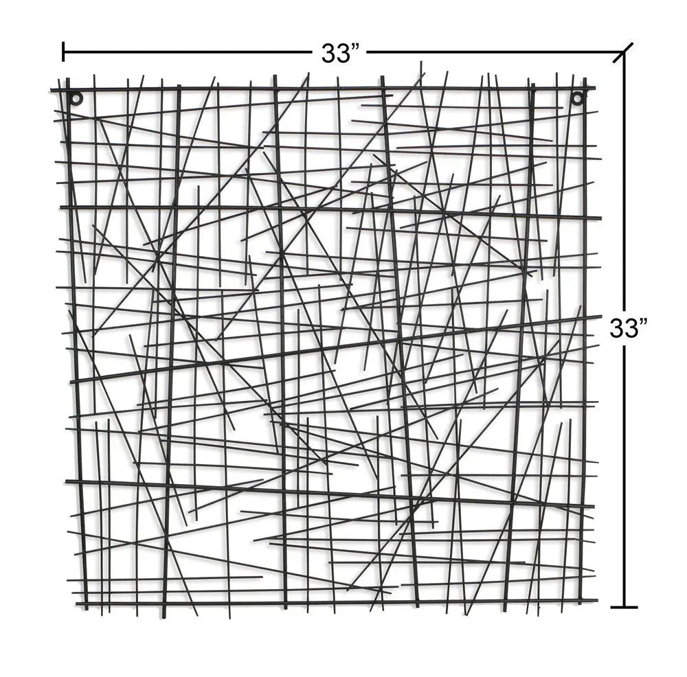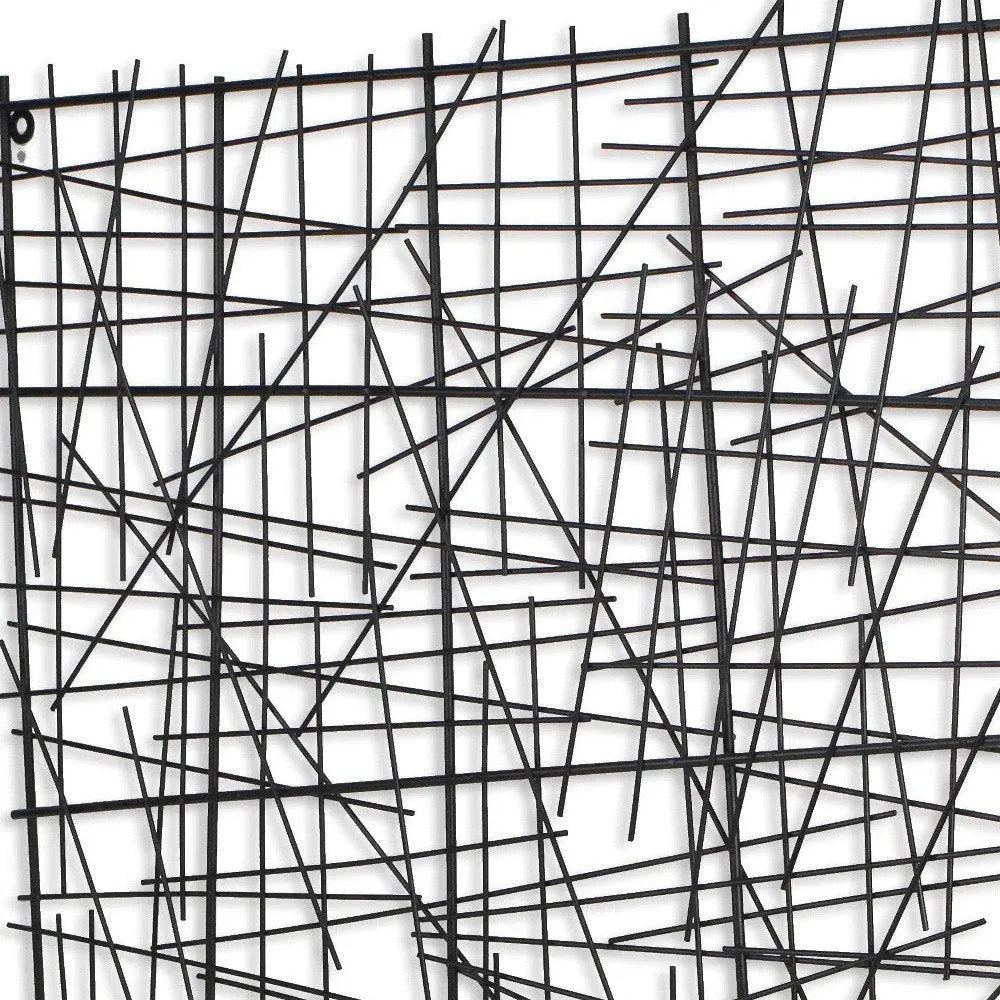 32" X 32" Black Handcrafted Abstract Lines Metal Hanging Dimensional Sculpture