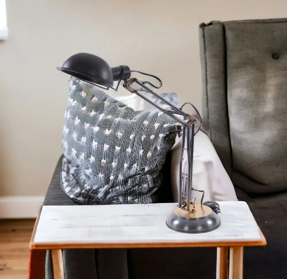 33" Black Metal Desk Table Lamp With Black Bowl Shade