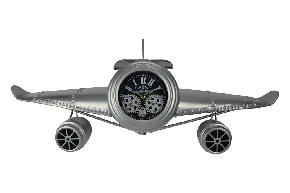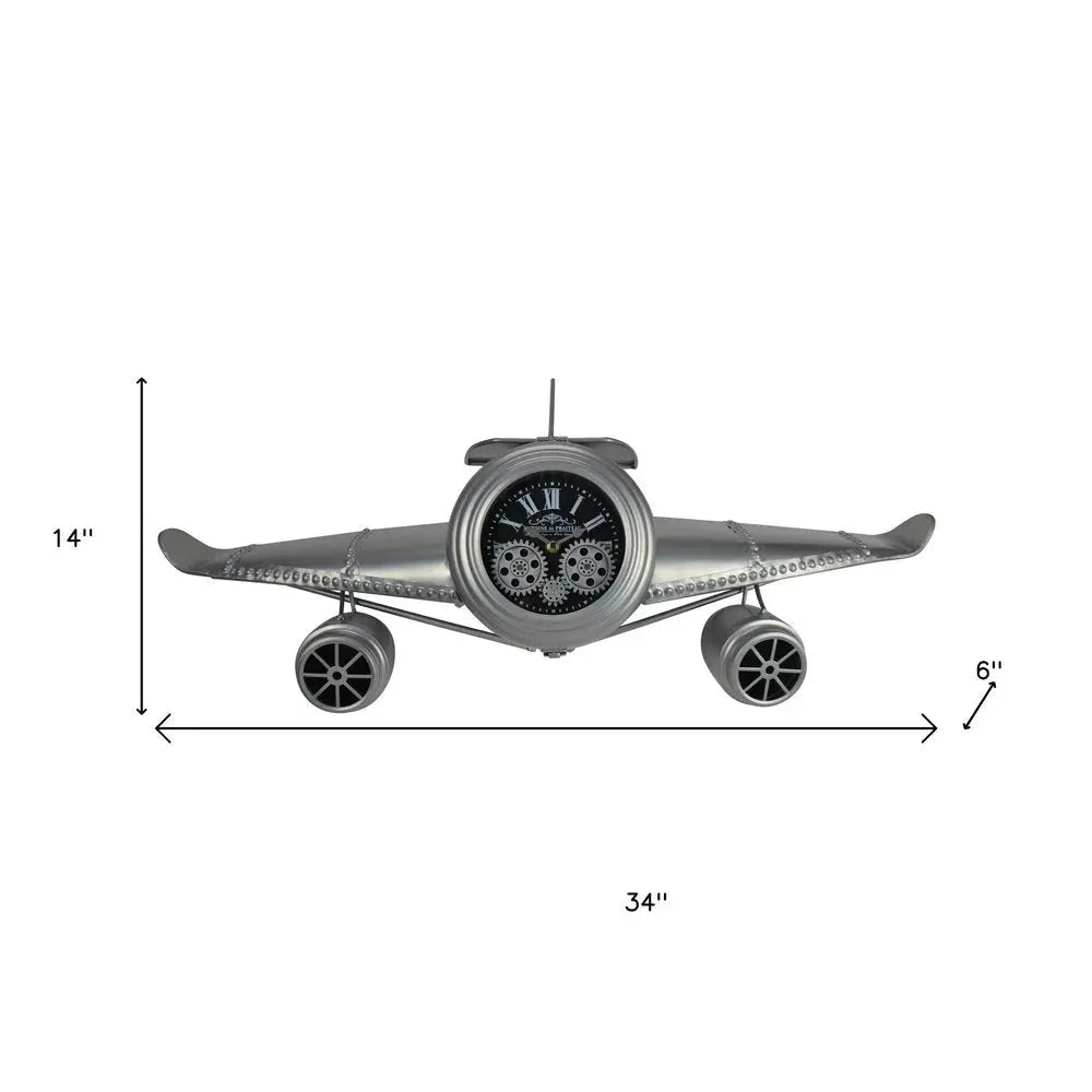 34" Silver And Black Metal Silent Analog Exposed Gear Novelty Wall Clock