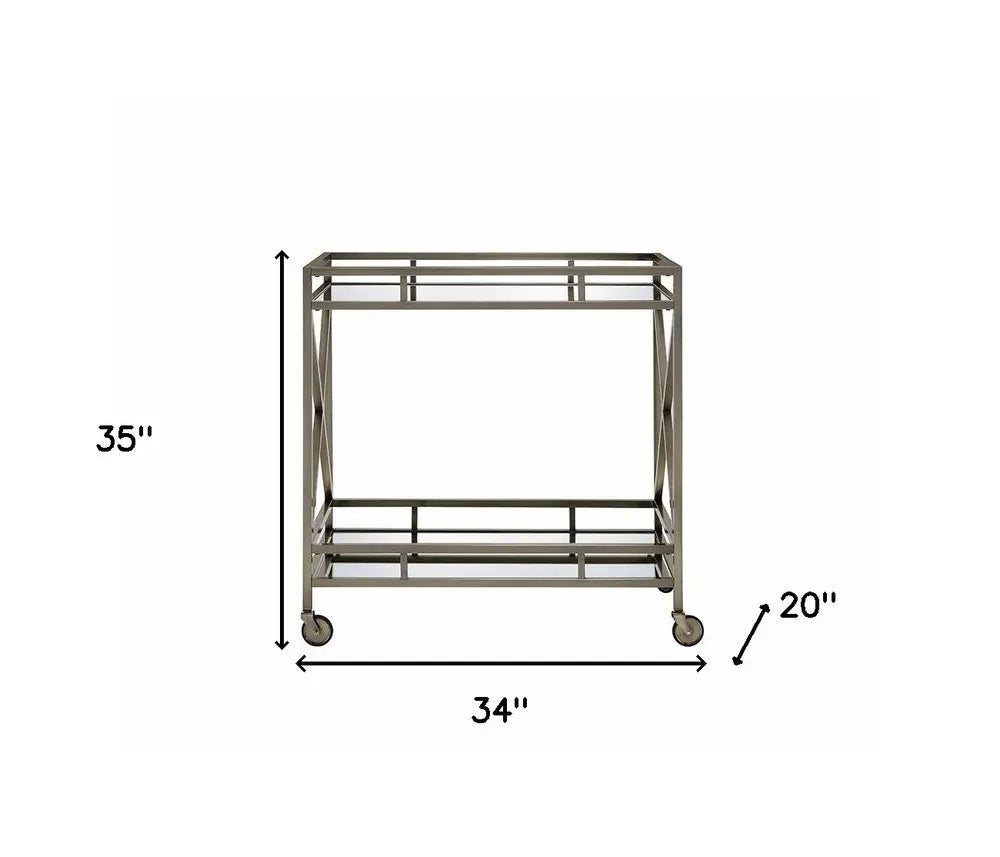 34" X 20" X 35" Antique Brass Metal Serving Cart