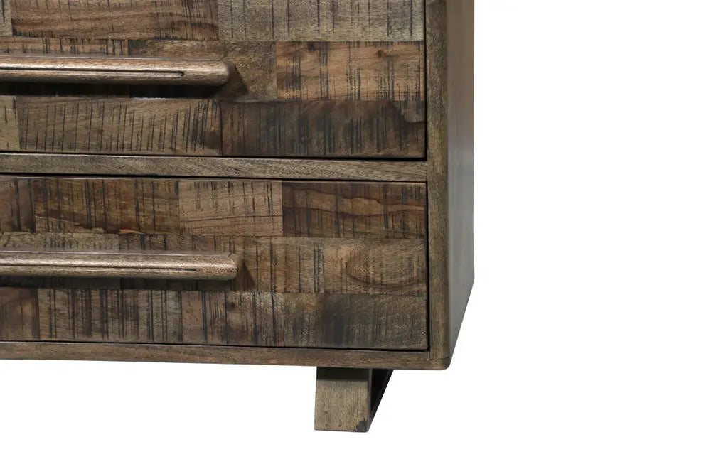 35" Brown Carved Geometric Solid Wood Five Drawer Dresser