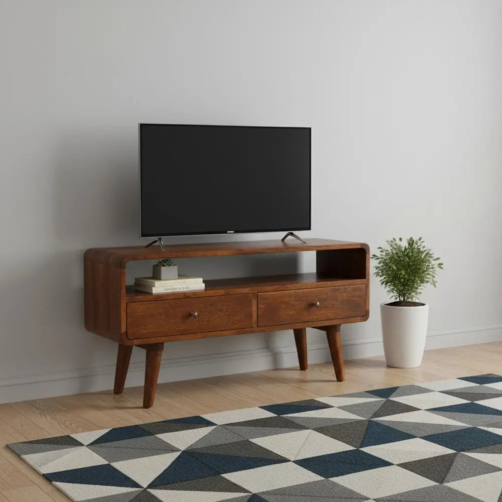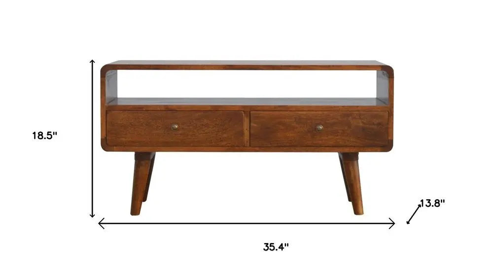 35" Chestnut Solid Wood Enclosed and Open Storage TV Stand