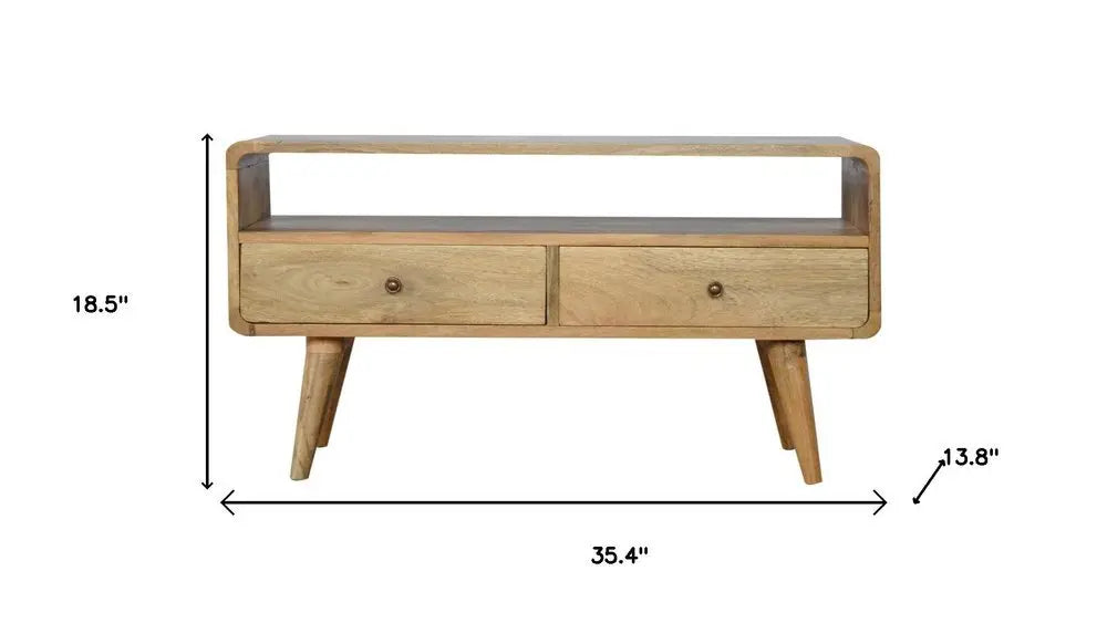 35" Oak Solid Wood Enclosed and Open Storage TV Stand