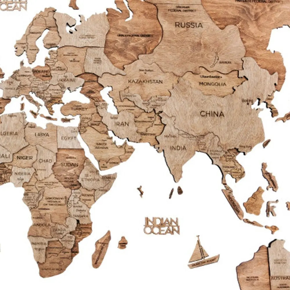 35" X 59" Wood Brown Wood World Map Hanging Dimensional Sculpture