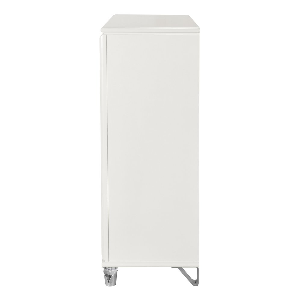 • 37" White Wood With Gold Faux Crystal Bling Wood Five Drawer Dresser