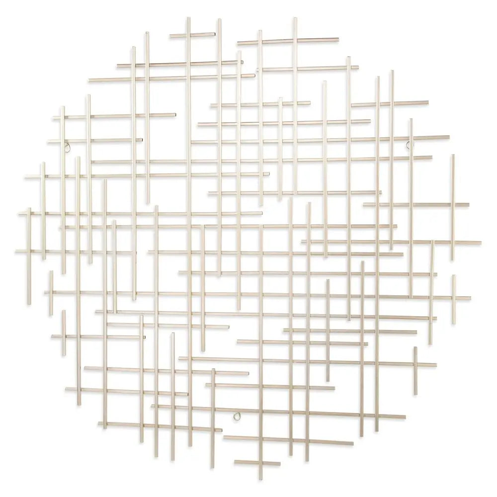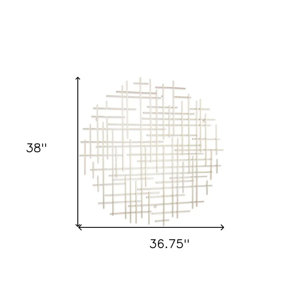 37" X 38" Silver Metal Abstract Lines Round Hanging Dimensional Sculpture