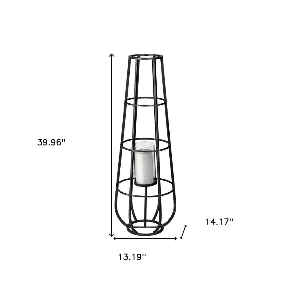 40" Black Distressed Geometric Metal Lantern Candle Holder