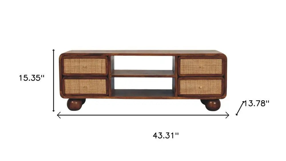43" Brown Solid Wood Enclosed and Open Storage TV Stand