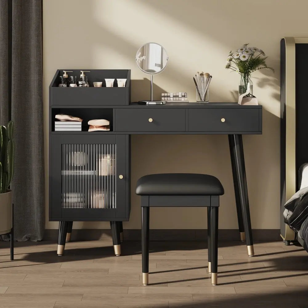 44" Black Wood Two Drawer Dresser