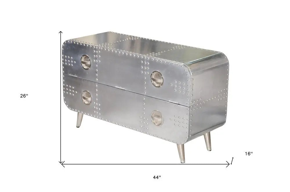 44" Silver Aluminum Enclosed Storage TV Stand