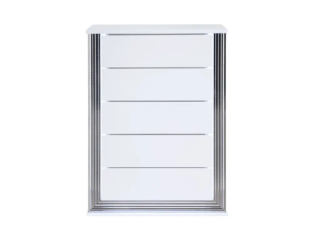 • 49" White Wood Lighted Five Drawer Dresser