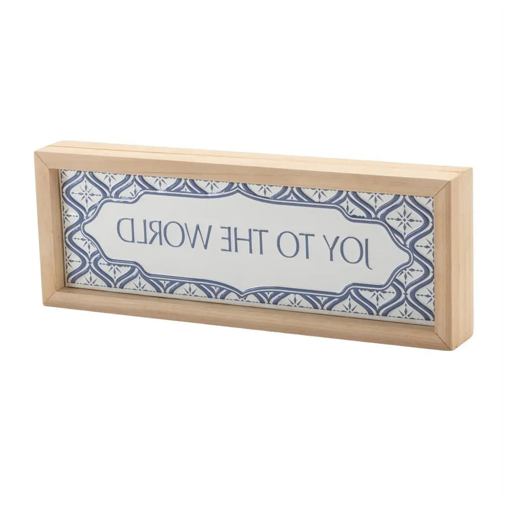 5" X 12" Blue And White Christmas Joy To The World Wood Framed Art