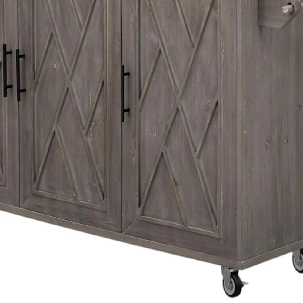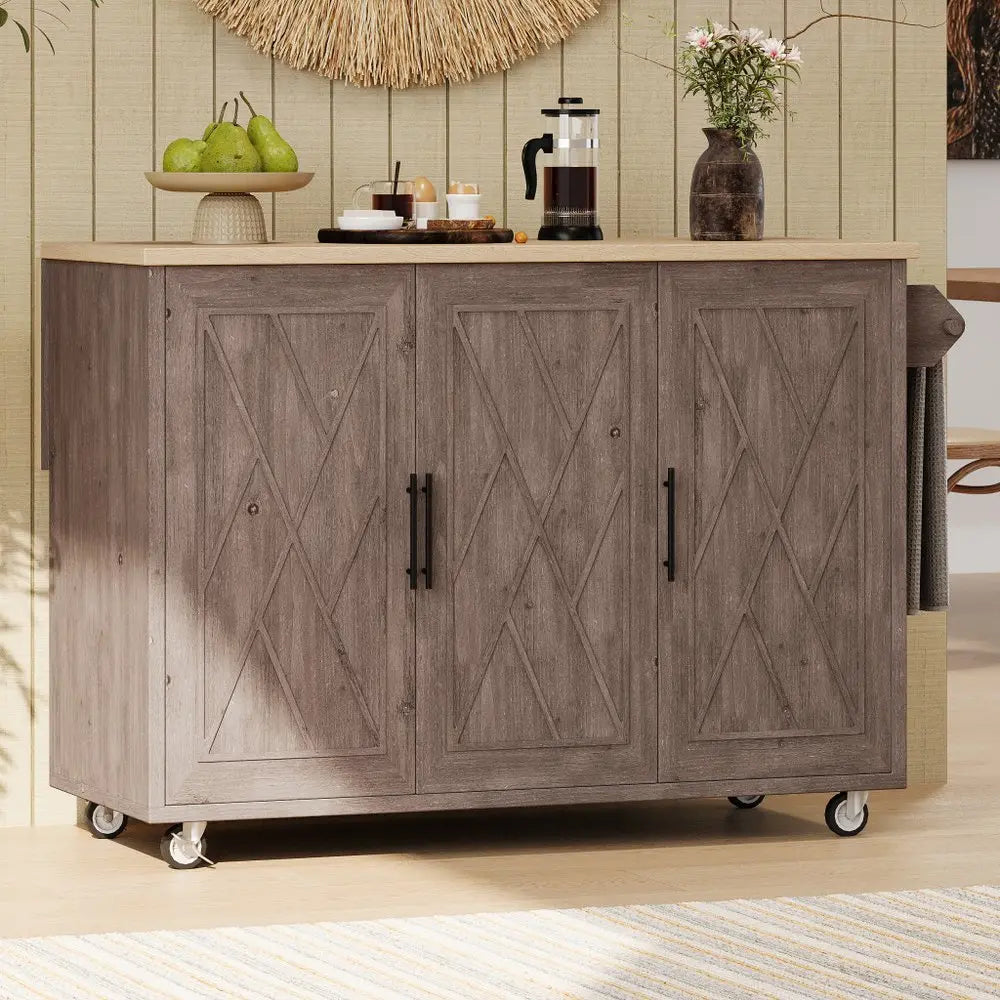 51" Brown Wood Barn Door Rolling Kitchen Island