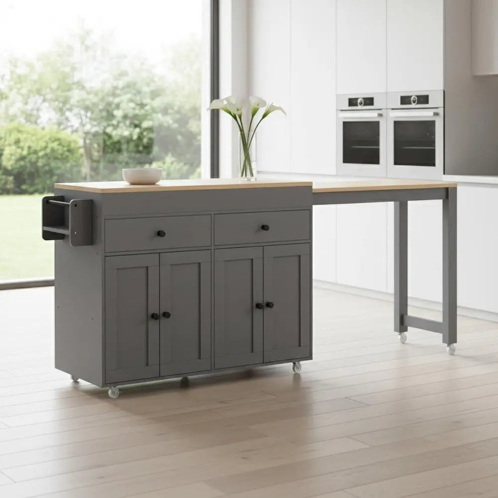51" Gray Wood Barn Door Rolling Kitchen Island