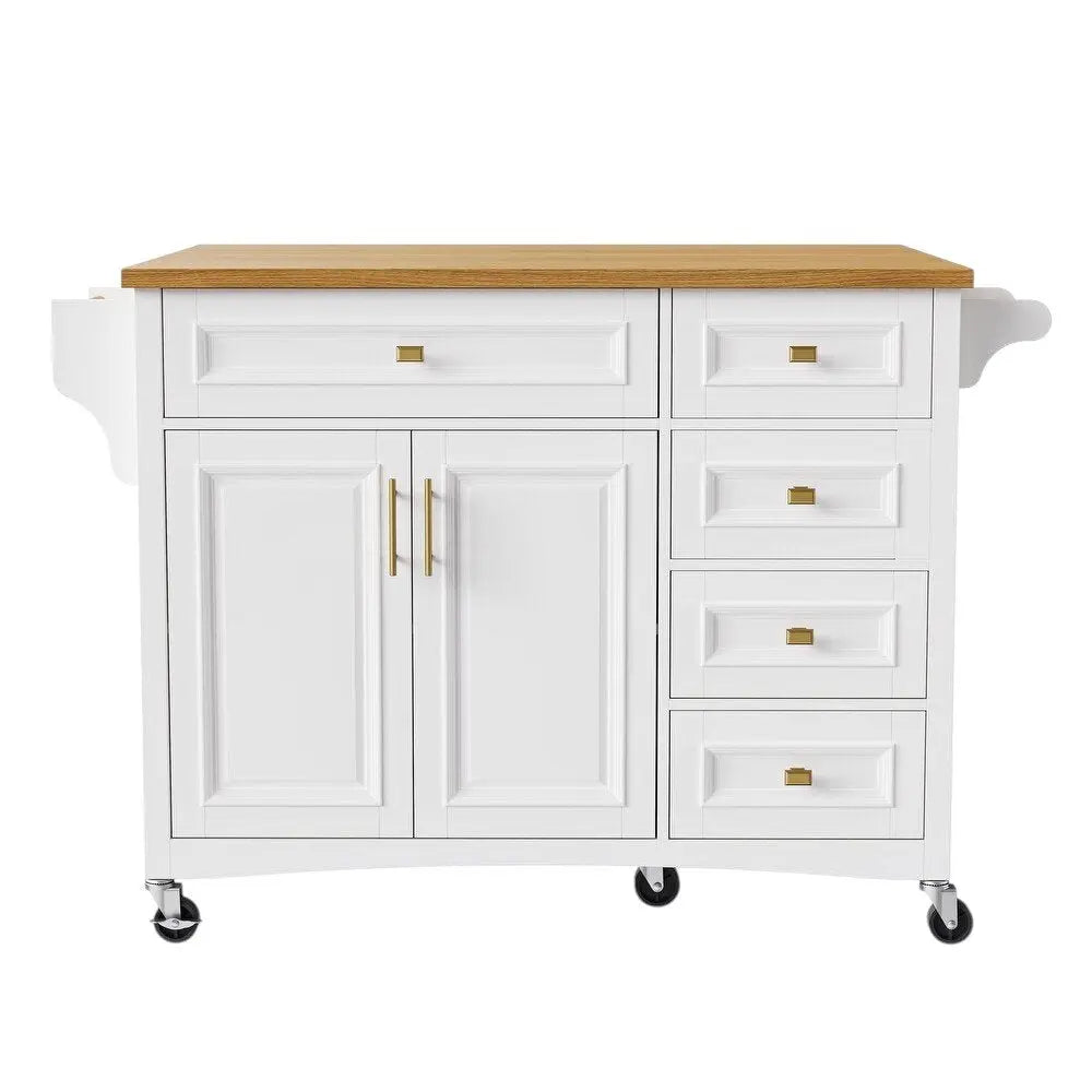 52" White Wood Barn Door Rolling Kitchen Island