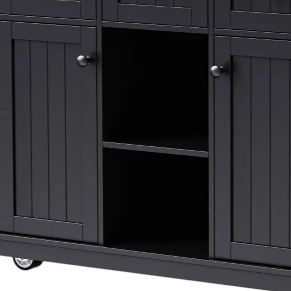 53" Black Wood Barn Door Rolling Kitchen Island With Storage With USB