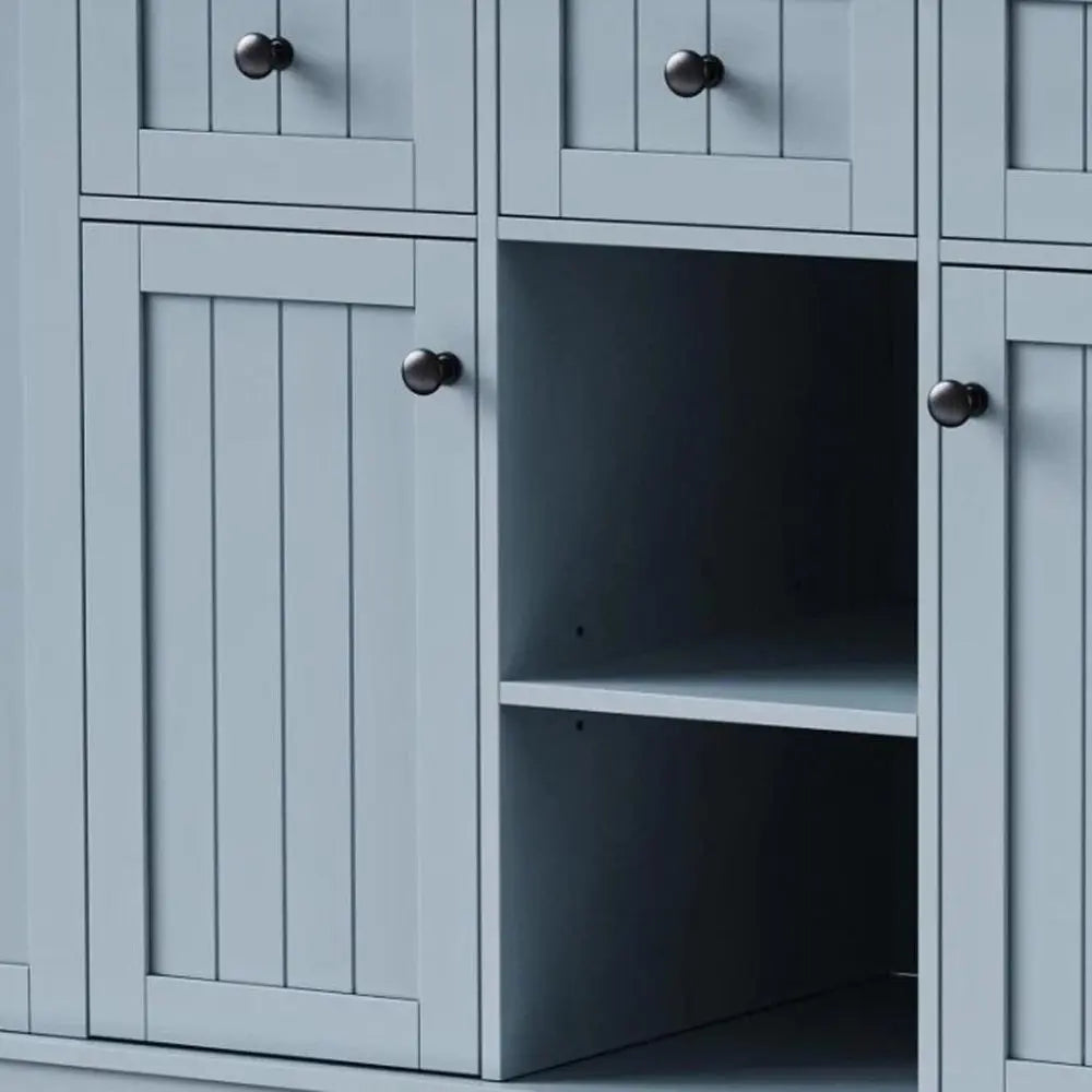 53" Light Blue Wood Barn Door Rolling Kitchen Island Set With Storage With USB