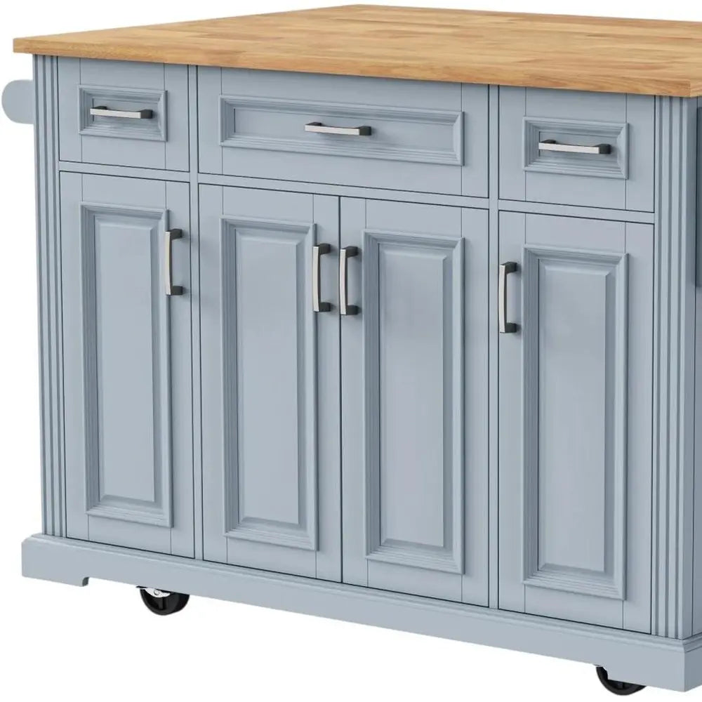 54" Light Blue Wood Barn Door Rolling Kitchen Island With Storage
