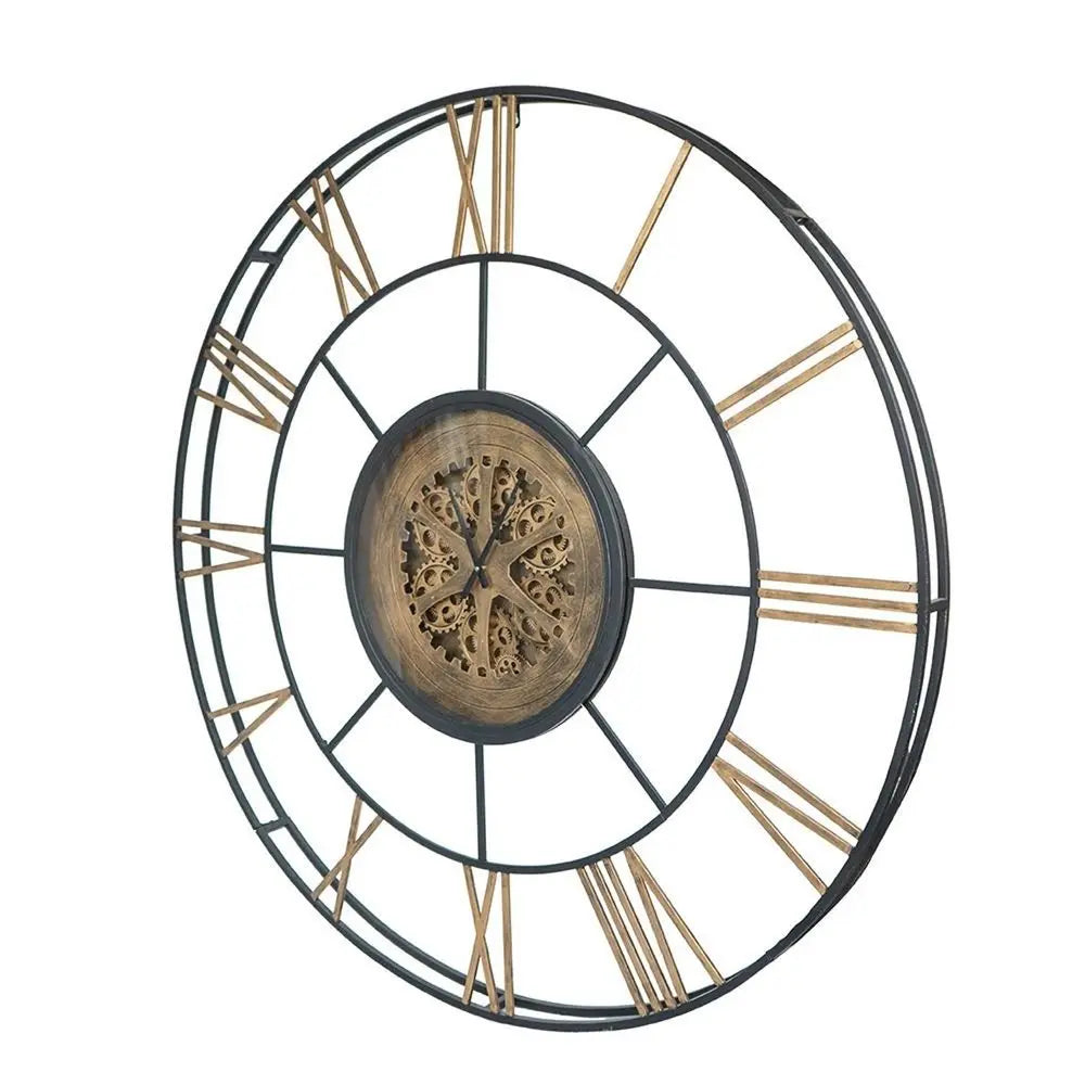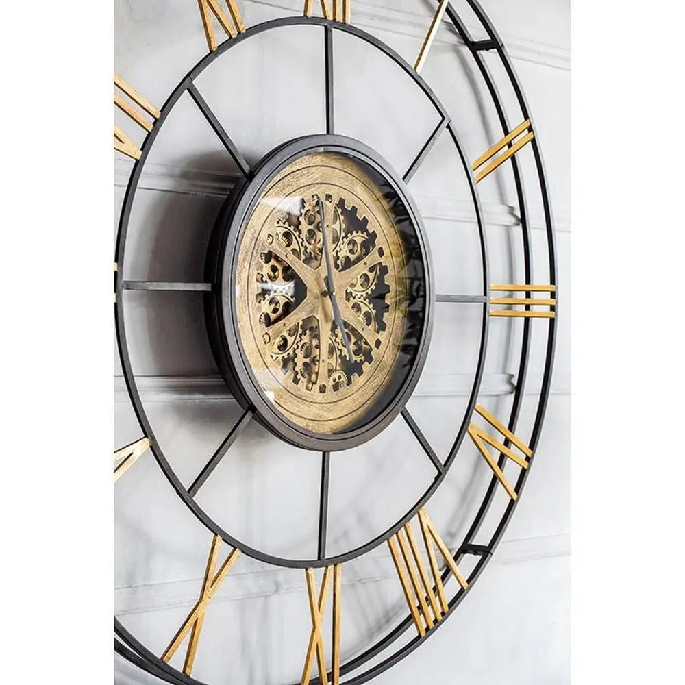 56" Circle Copper Metal and Glass Analog Exposed Gear Wall Clock