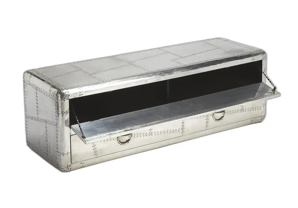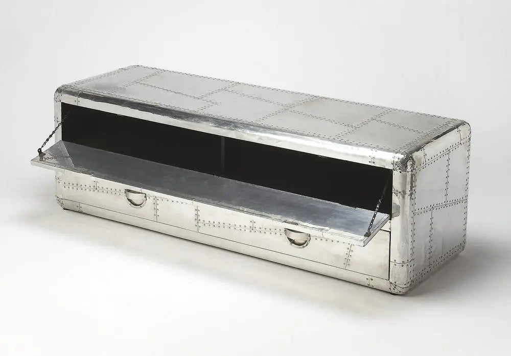 59" Silver Solid Wood Enclosed and Open Storage TV Stand