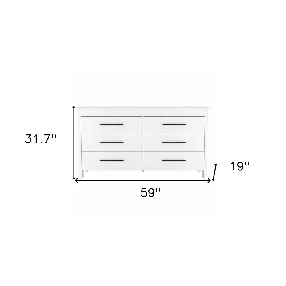 59" White Six Drawer Double Dresser
