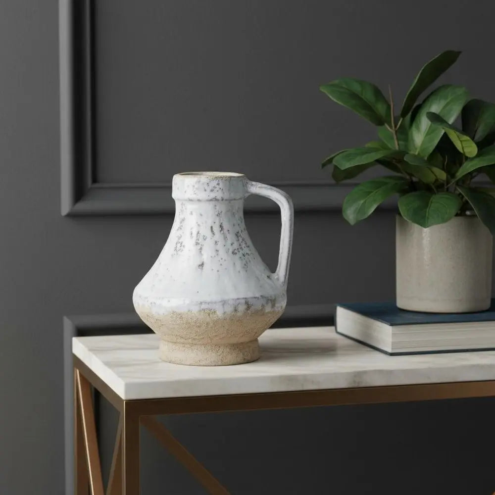6" Beige and Ivory Round Terracotta Jug Vase With Does Not Apply - NOBLE HOME INTERIORS