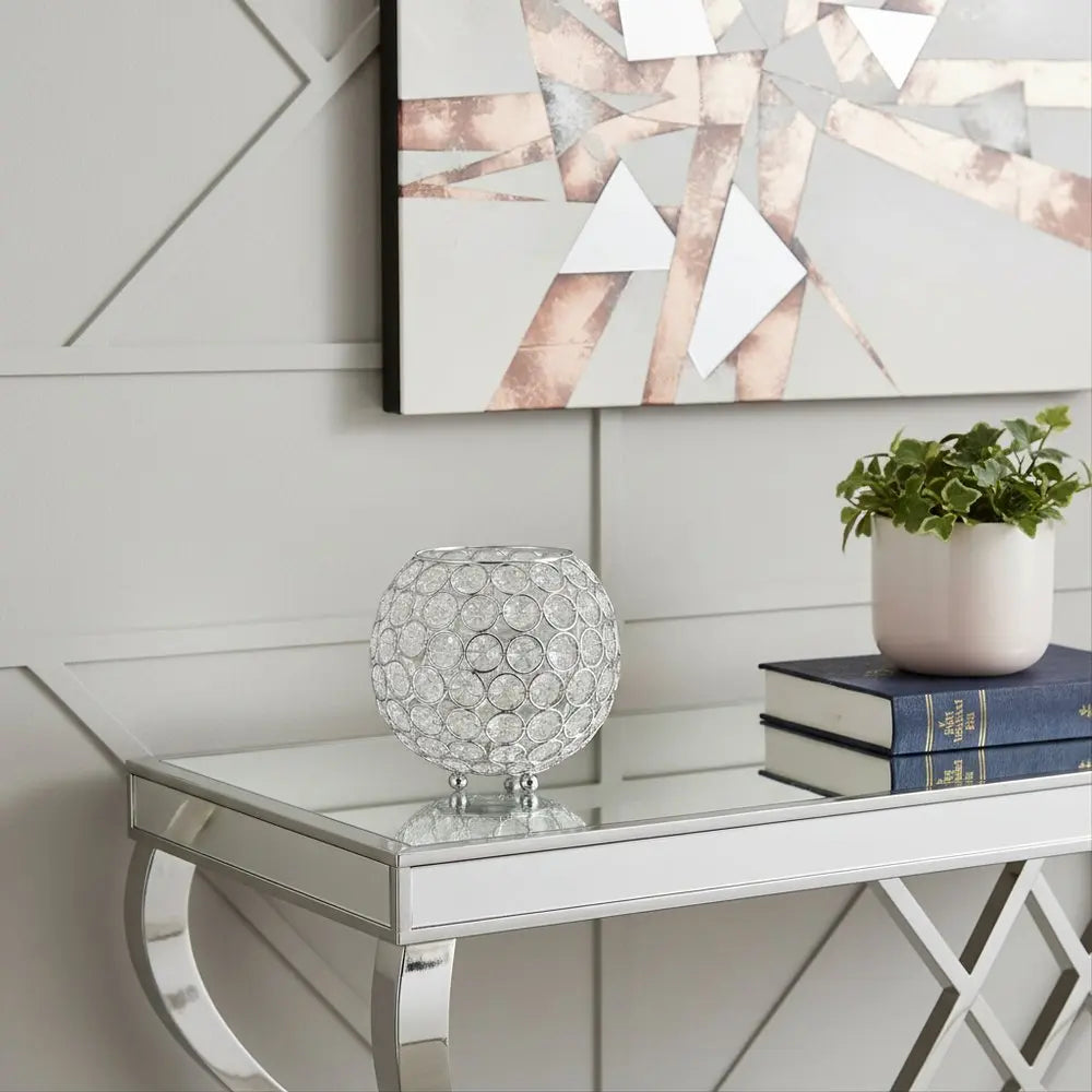 • 6" Clear And Silver Faux Crystal And Metal Round Table Vase