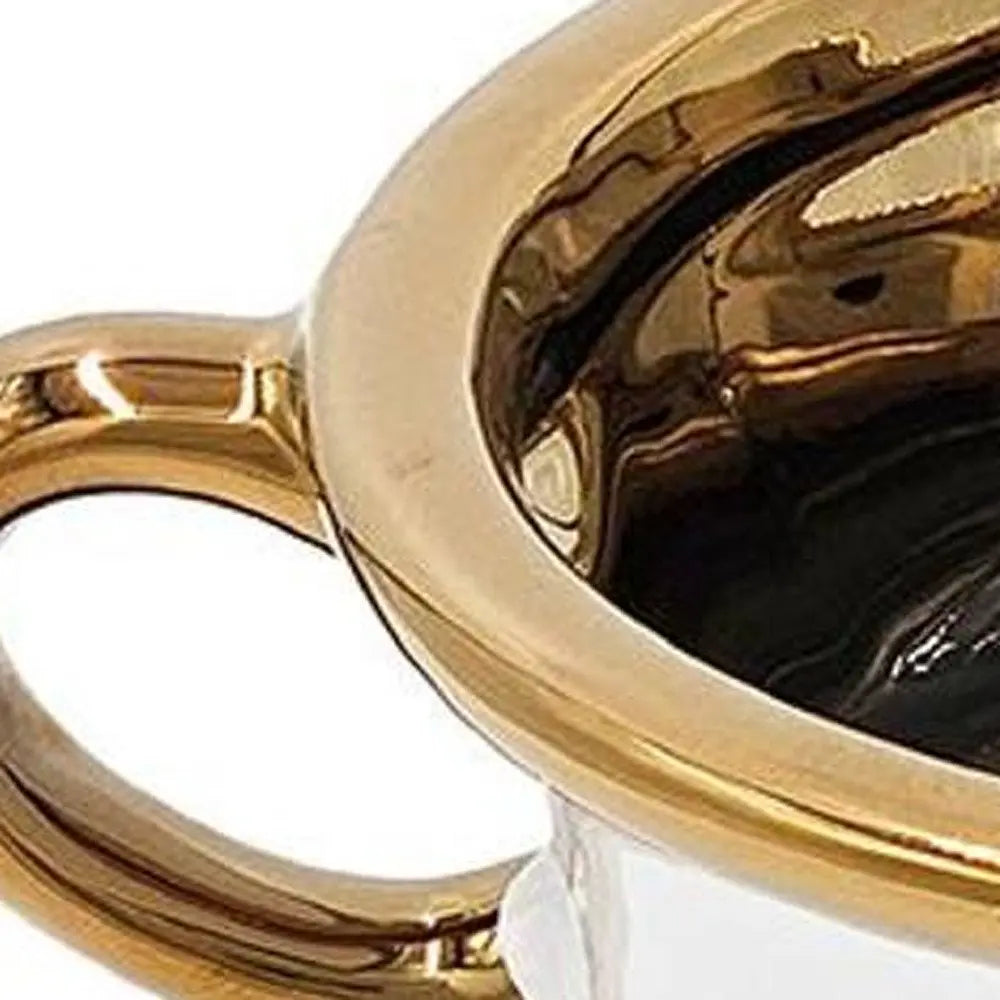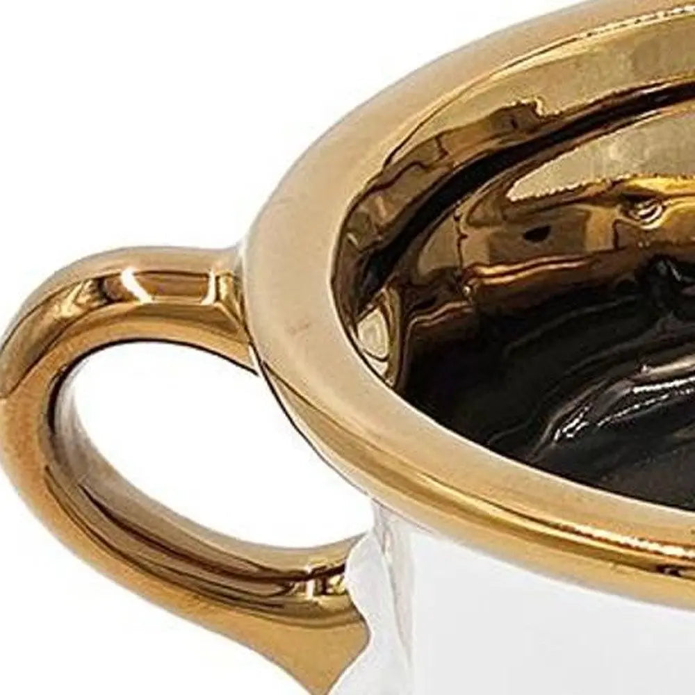 6" White And Gold Amphora Ceramic Table Vase