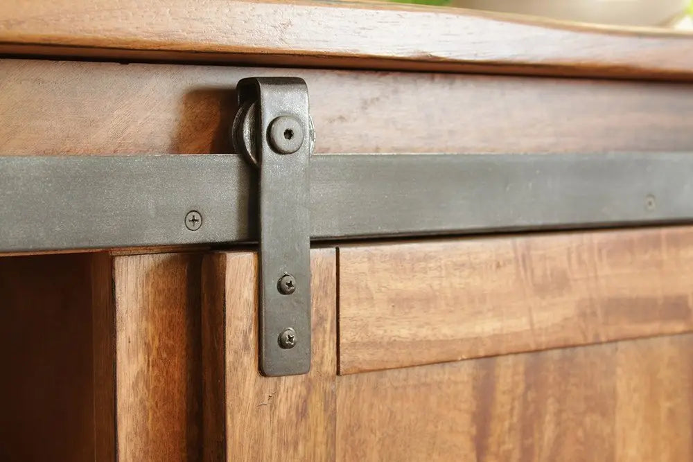60" Brown Solid Wood Enclosed Storage Distressed TV Stand