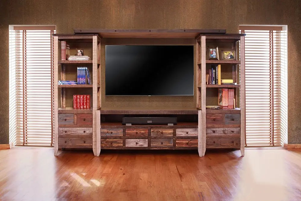 61" Brown Solid Wood Cabinet Enclosed Storage Distressed TV Stand