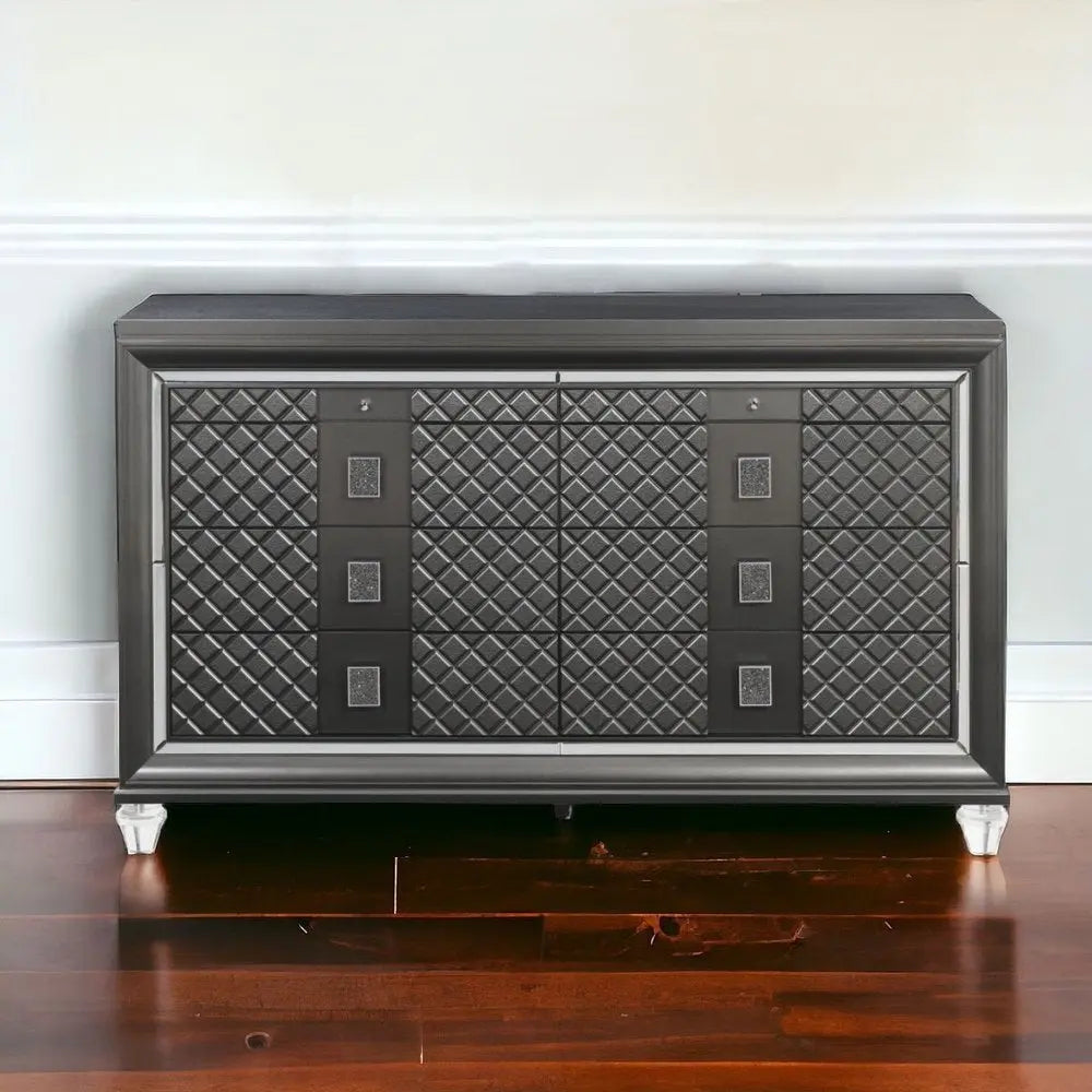 65" Gray Solid and Manufactured Wood Eight Drawer Double Dresser