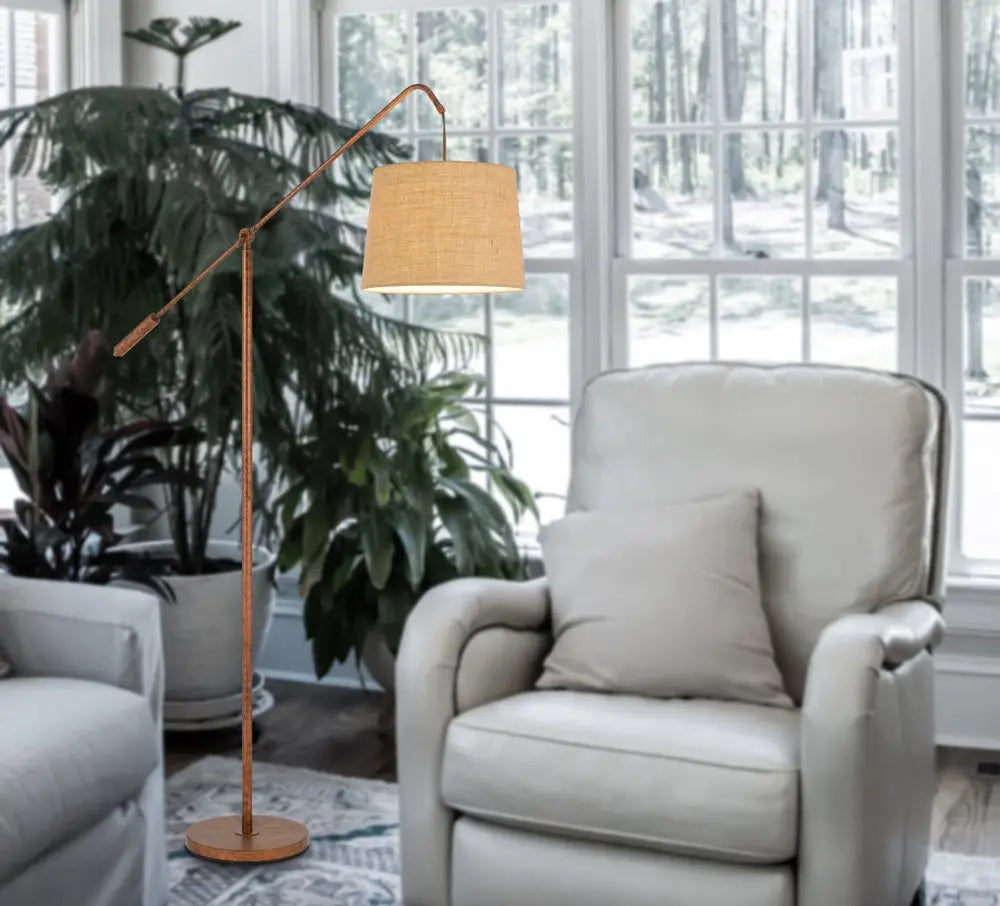 68" Rusted Adjustable Traditional Shaped Floor Lamp With Rust Drum Shade