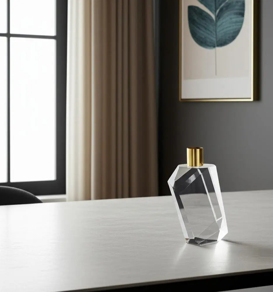 7" Clear And Gold Geo Faceted Crystal Tabletop Taper Candlestick