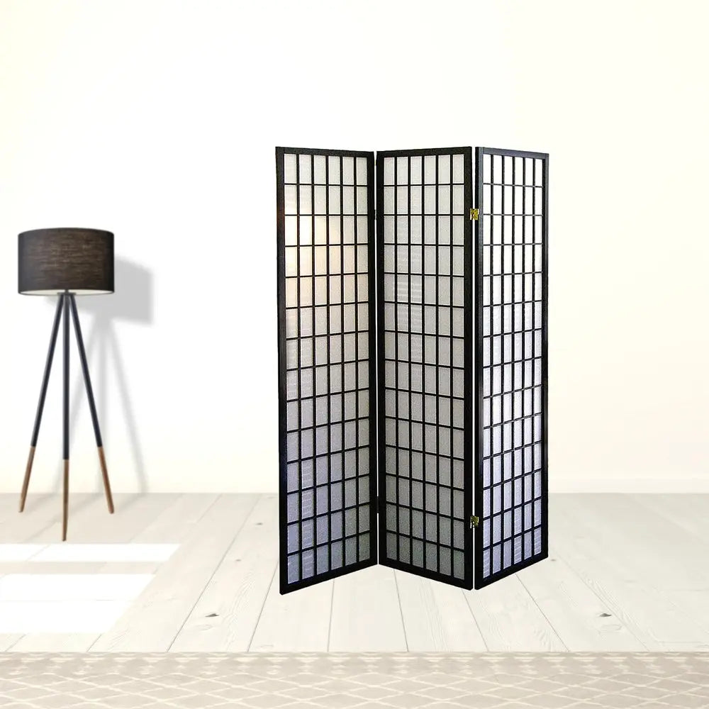 70" Black And White Heavy Duty Rice Paper Folding Three Panel Screen Room Divider