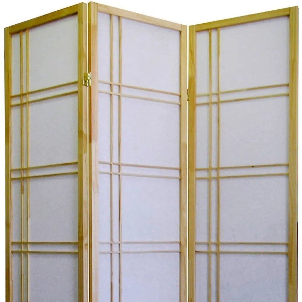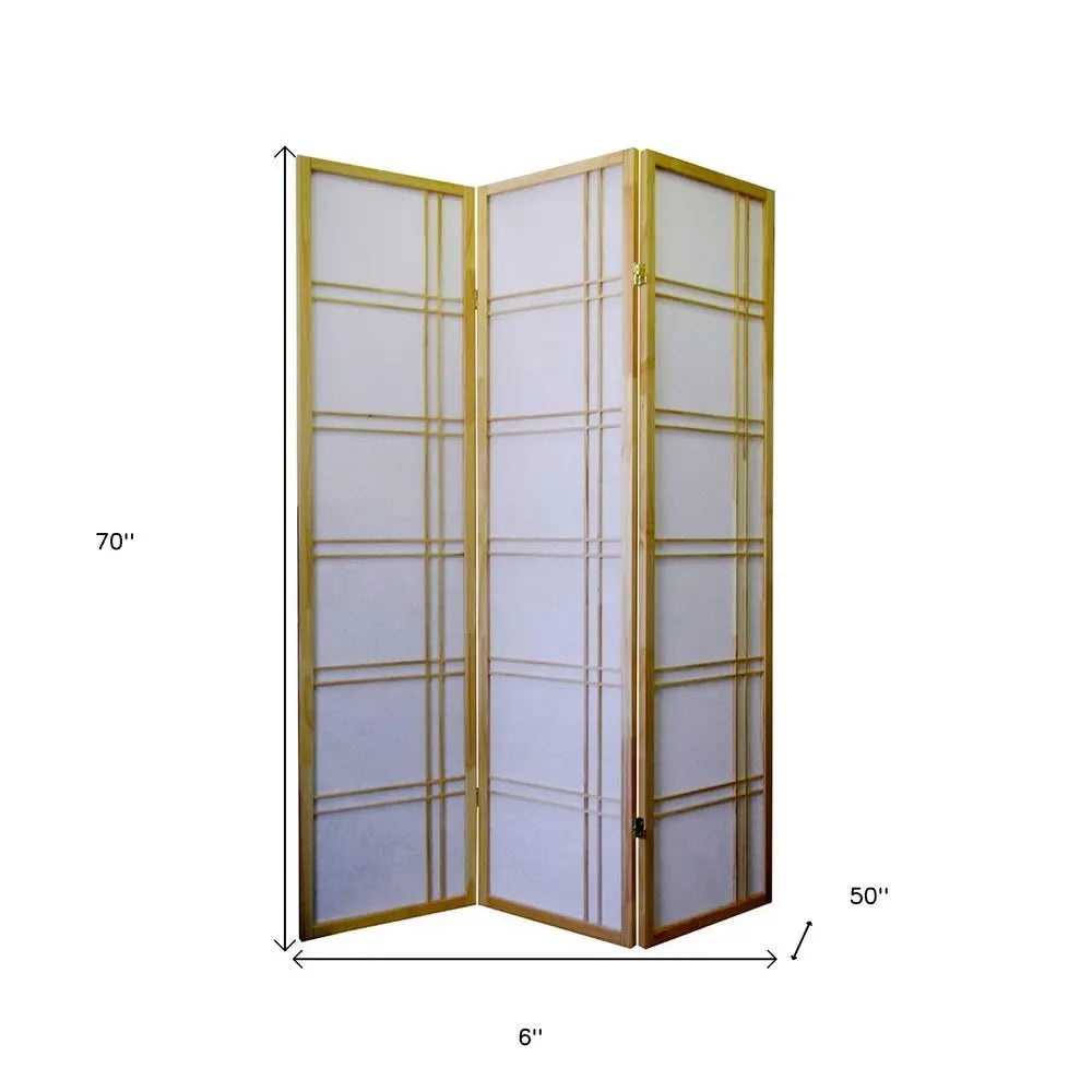 70" Brown And White Heavy Duty Rice Paper Folding Three Panel Screen Room Divider