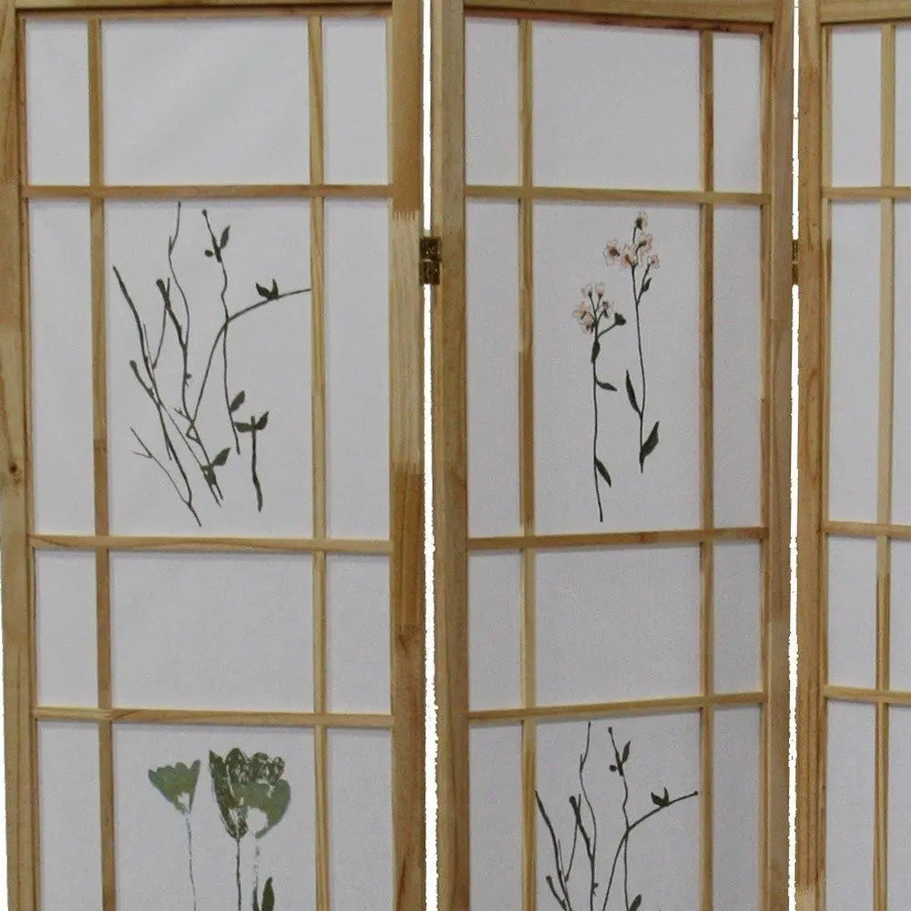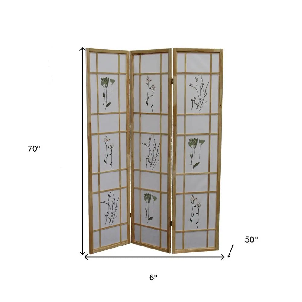 70" Brown And White Heavy Duty Rice Paper Folding Three Panel Screen Room Divider
