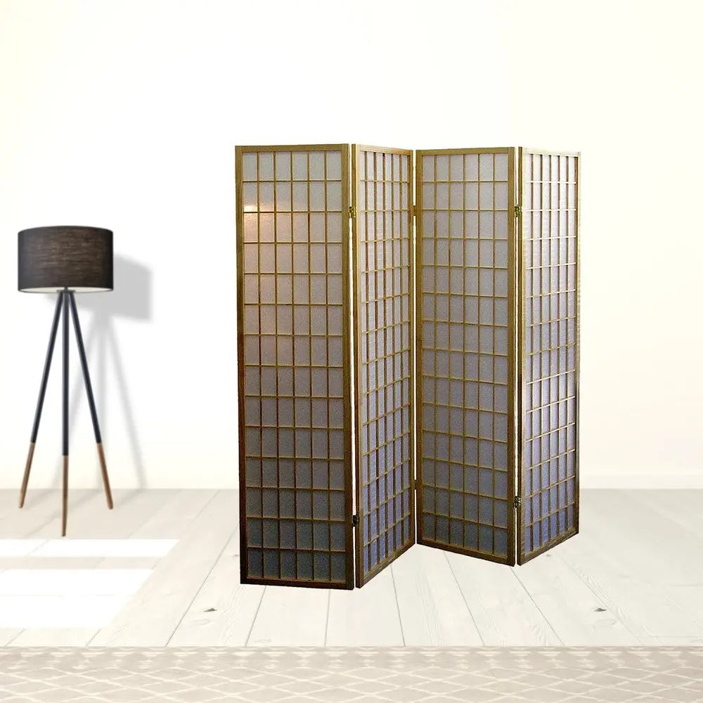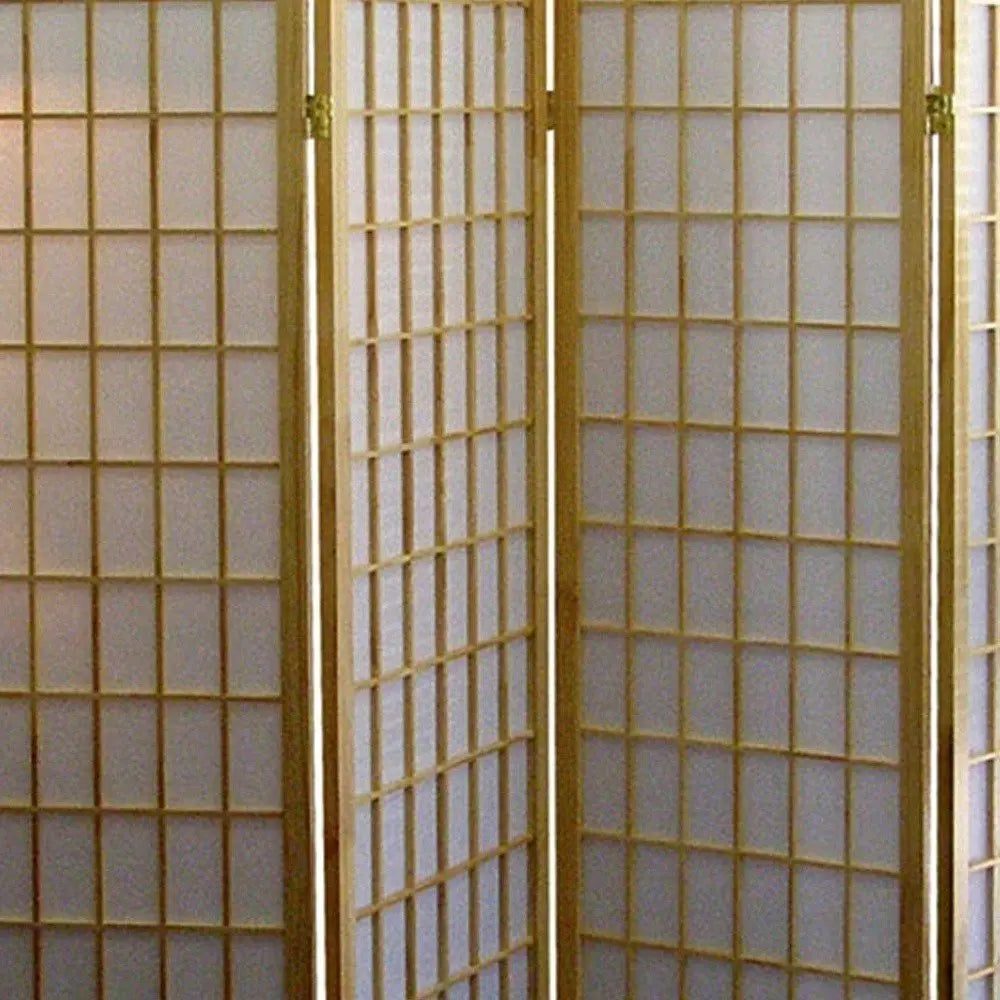 70" Brown Heavy Duty Rice Paper Folding Four Panel Screen Room Divider