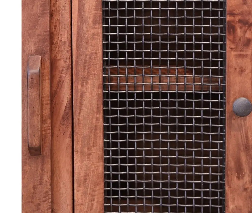 70" Brown Solid Wood Cabinet Enclosed Storage Distressed TV Stand