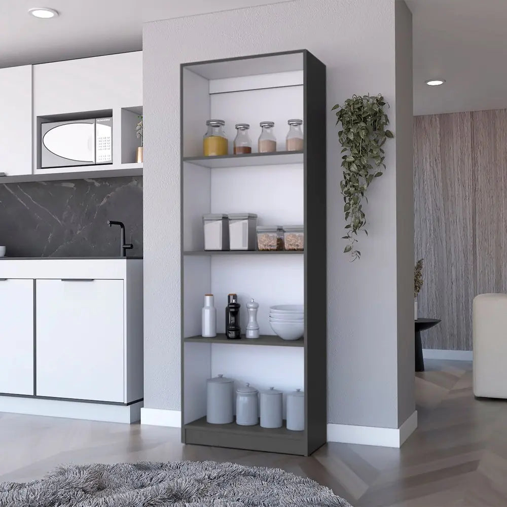 71" Gray And White Wood Four Tier Bookcase