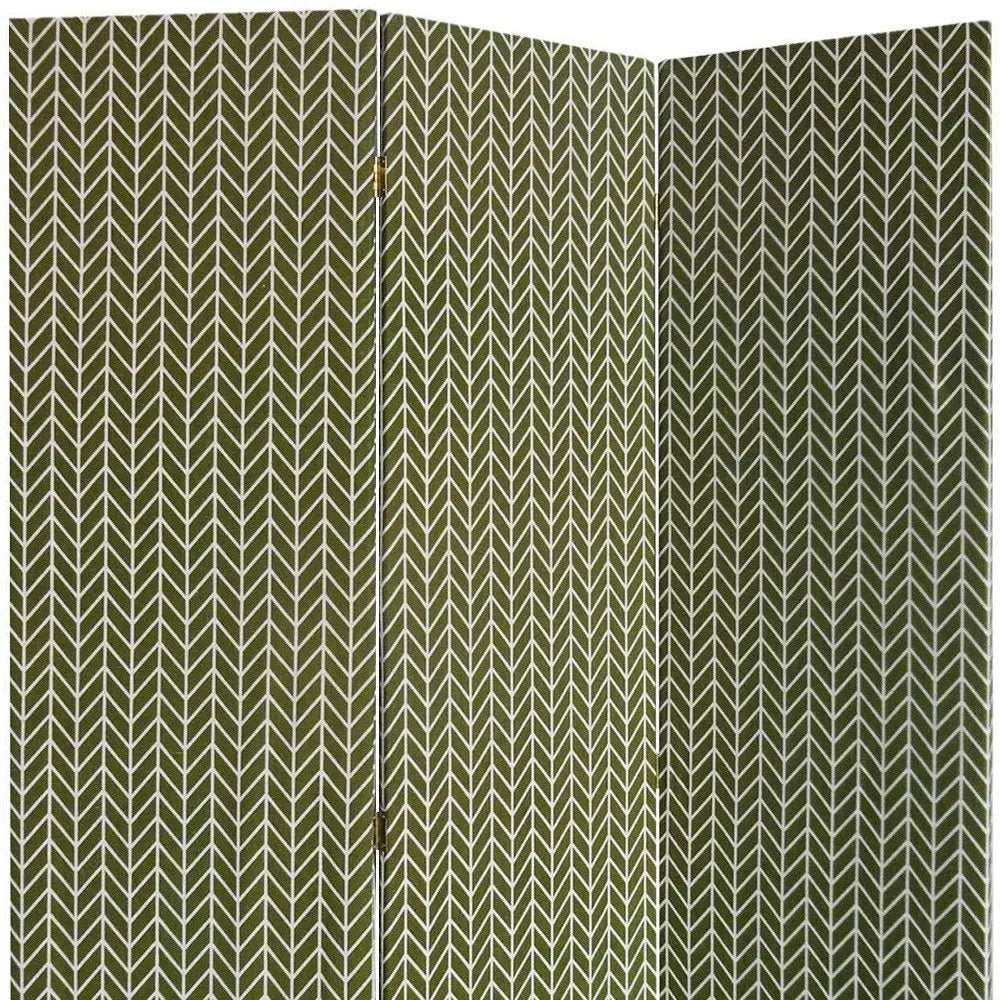 71" Green Fabric Folding Three Panel Screen Room Divider