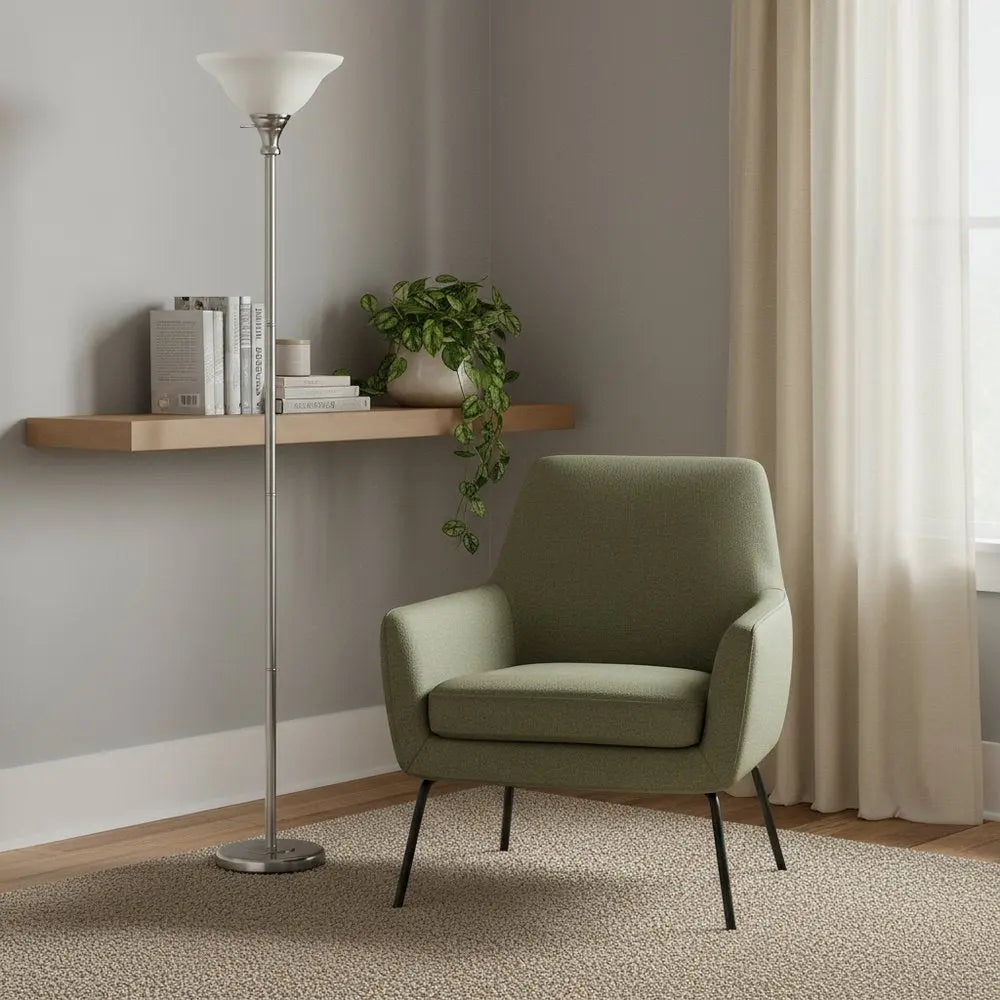 71" Nickel Torchiere Floor Lamp With Clear Frosted Glass Dome Shade