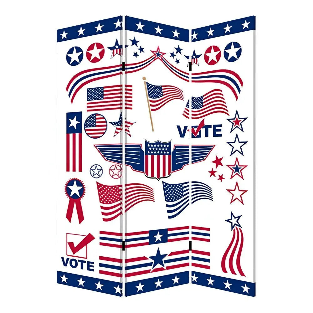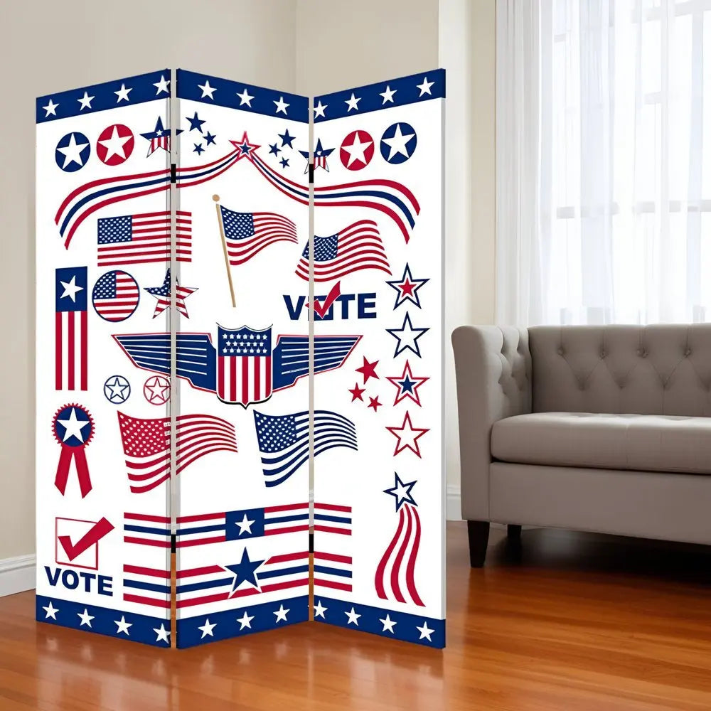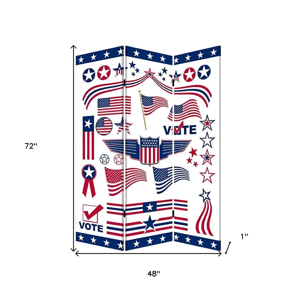 72" Blue and White Canvas Folding Three Panel Screen Room Divider