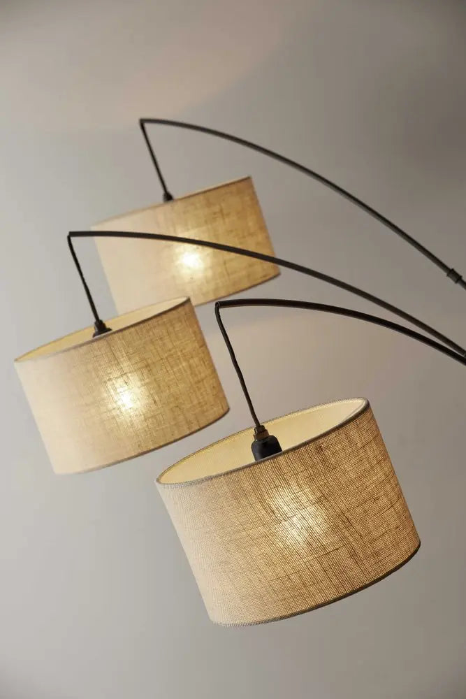 74" Silver Three Light Tree Floor Lamp With White Linen Drum Shade