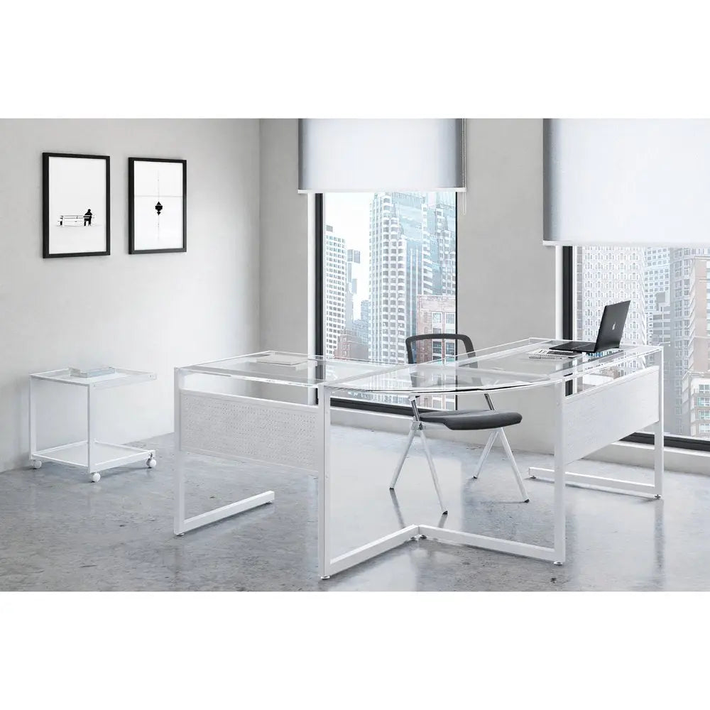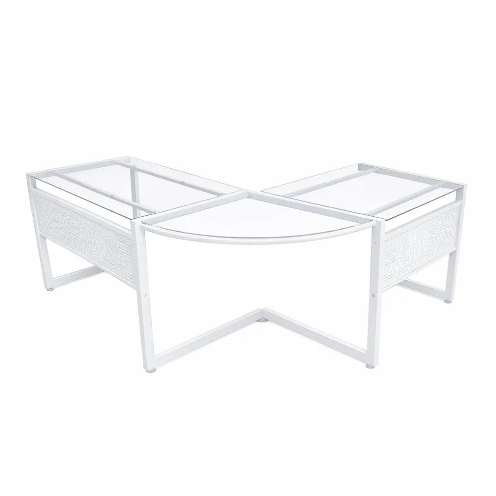 78" Clear and White Glass and Metal Corner Computer Desk