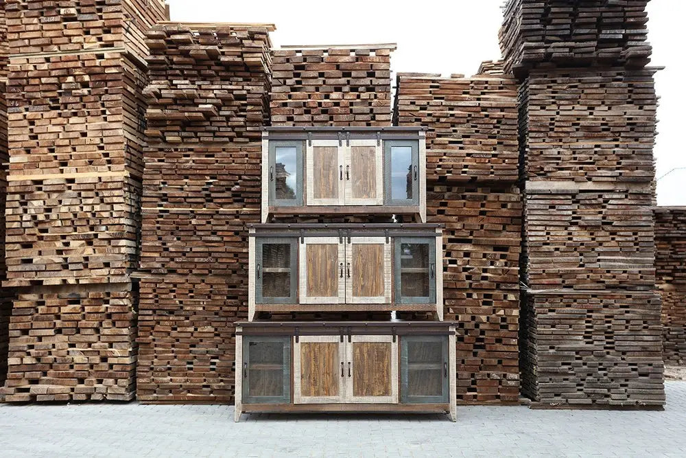 79" Brown Solid Wood Cabinet Enclosed Storage Distressed TV Stand