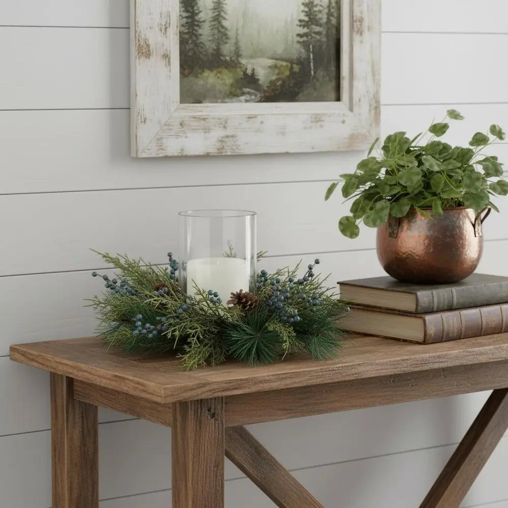 8" Blue And Green Abstract Plastic Tabletop Pillar Candle Holder