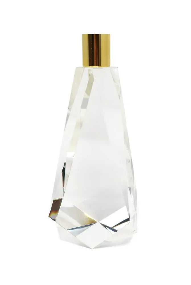 8" Clear And Gold Geo Faceted Crystal Tabletop Taper Candlestick