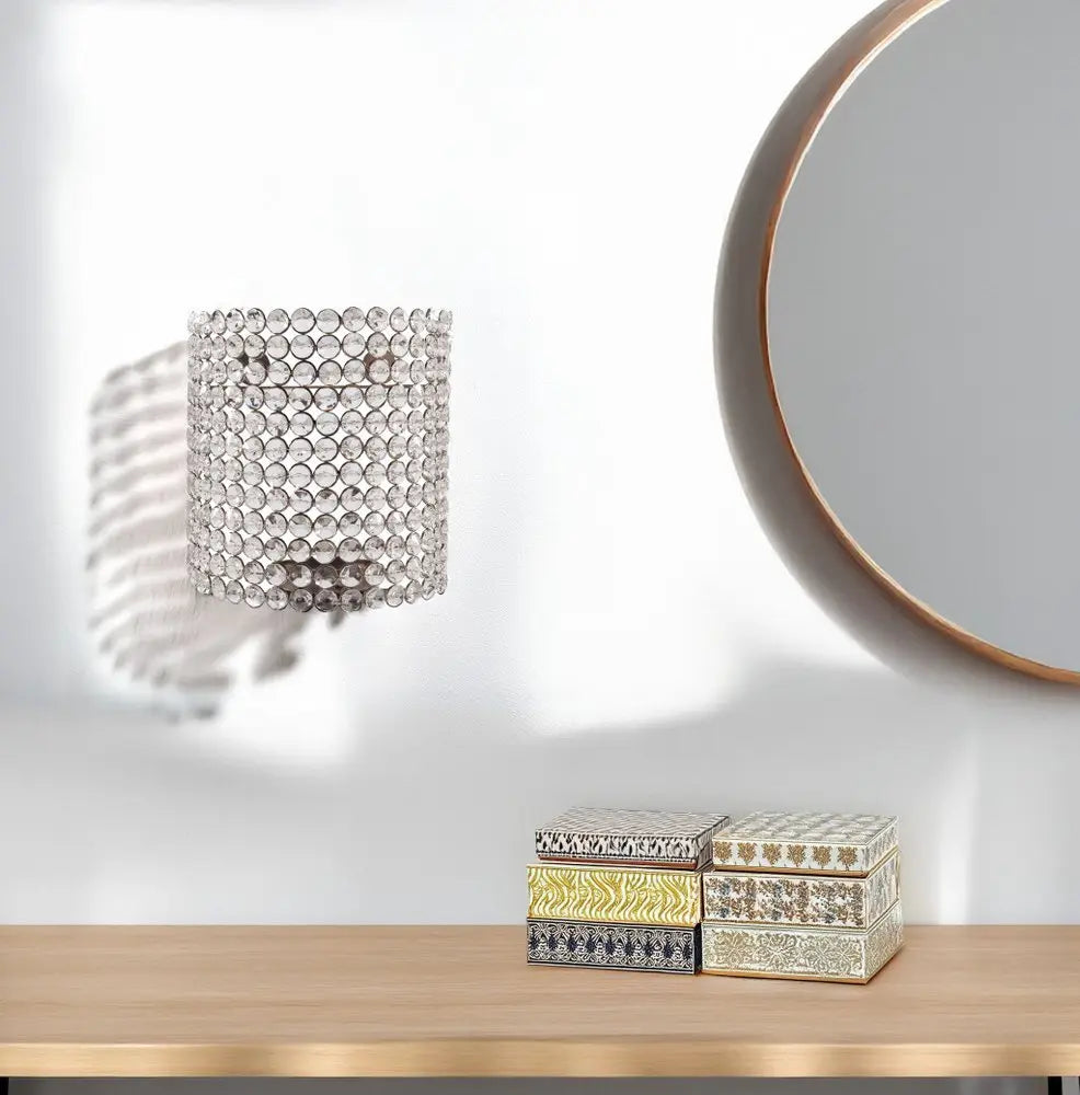 8" Clear And Silver Bejeweled Crystal Wall Sconce Candle Holder