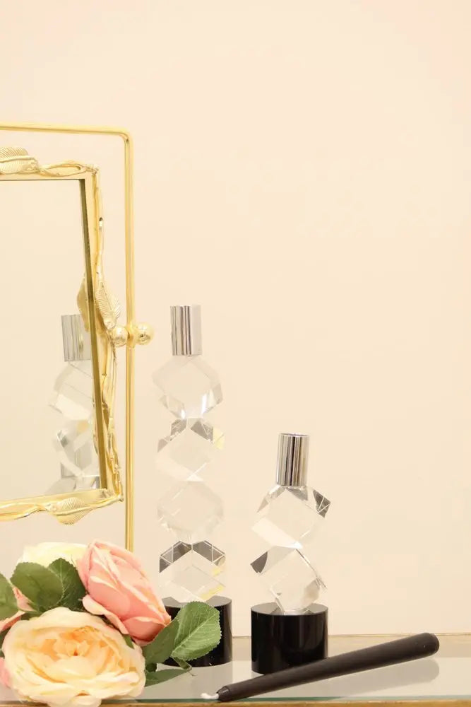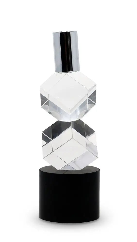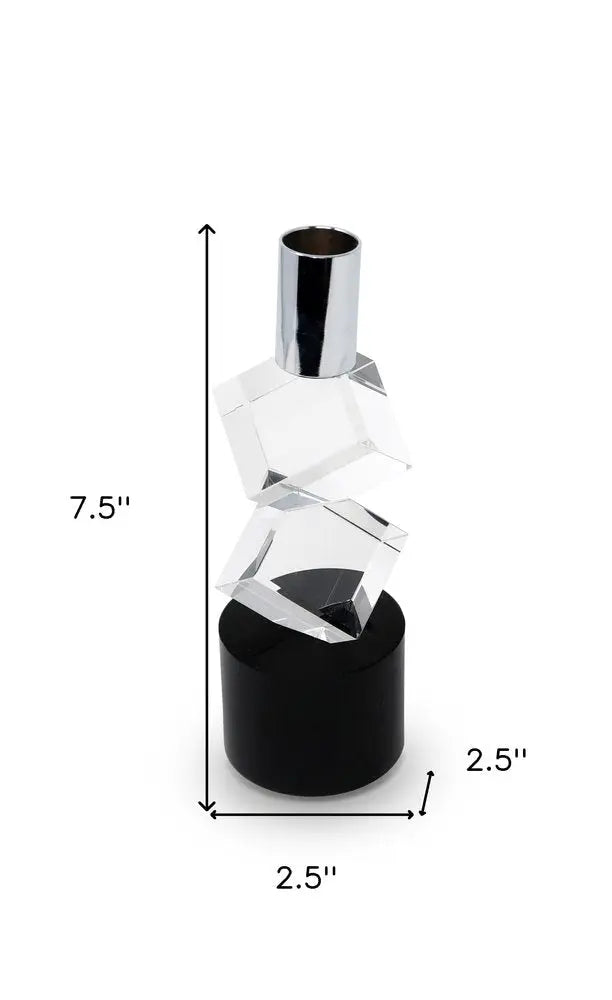 8" Silver Clear And Black Faceted Crystal Tabletop Taper Candlestick